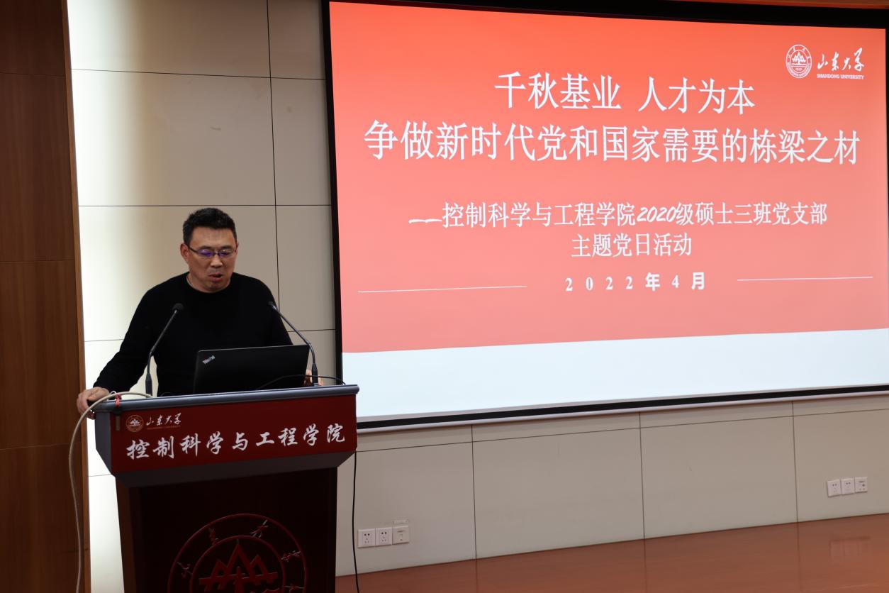 为进一步推进党史学习教育落实落地,培养青年学生在砥砺家国情怀中成长成才,充分发挥研究生党支部在疫情防控特殊时期的战斗堡垒作用和党员先锋模范作用,4月14日下午,澳门信誉最好十大平台副校长吴臻在澳门十大信誉网赌大全4号楼302报告厅为澳门十大信誉网赌大全2020级硕士3班党支部讲授了题为“千秋基业,人才为本——争做新时代党和国家需要的栋梁之才”专题党课,澳门十大信誉网赌大全党委书记高瑞、副院长王光臣、党委副书记李文振、辅导员王宇凡以及2020级硕士3班党支部全体党员参与了此次专题党课活动。