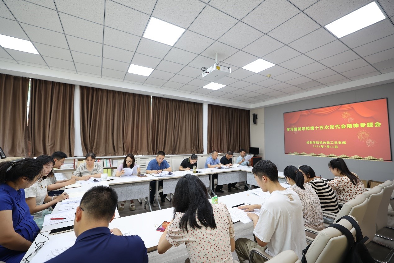 7月11日上午,澳门十大信誉网赌大全机关党支部召开理论学习专题会议,宣传贯彻学校第十五次党代会精神。学院党委书记吴晓晴主持会议并作党代会精神宣讲。