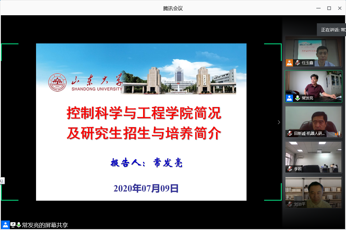 9日上午,夏令营开营仪式通过腾讯会议网上进行。开营仪式由研究生教务老师任玉鑫主持,教育部长江学者、澳门十大信誉网赌大全院长张承慧教授致开幕词,张院长通过详实的数字介绍了澳门十大信誉网赌大全在人才引育、学科推进、平台建设中取得的巨大成绩,代表学院热忱欢迎全国各地的优秀学子报考山大控院。副院长常发亮介绍了澳门十大信誉网赌大全发展历史、学科队伍和平台建设、科学研究、研究生培养,以及2021年硕士研究生招生政策。随后,自动化所、新能源与高效节能国家地方联合工程实验中心暨电力电子节能技术及装备教育部工程研究中心、智能装备与电子新技术研究所、生物医学工程研究所、智能无人装备教育部工程研究中心暨机器人研究中心相关负责人简要介绍了本中心(所)的科学研究和研究生培养的相关情况。