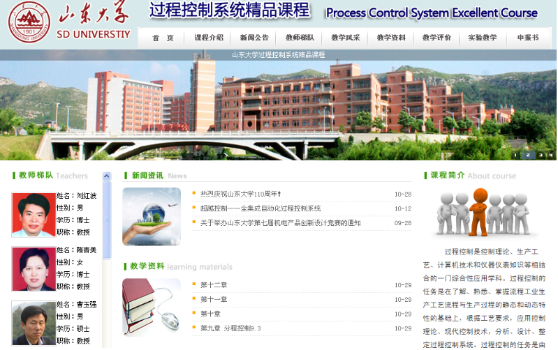 《过程控制系统》课程负责人:刘红波播放录像查看申报材料浏览课件