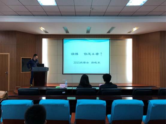 整个报告期间,会场气氛热烈,秩序井然,参会学生都被优秀博士毕业生们的科研经历所吸引。刘加朋师兄和黄文慧师姐与大家分享了科研论文方面的经验总结,提出创新点需要以阅读大量论文为基础,还要学会在热点来临之前发现热点并进行研究,让自己的科研更有价值;路晓东师兄就博士生就业规划展开了介绍,其中重点介绍了高校就业相关信息,如何让简历更加丰满,求职更加顺利等内容。提问环节中,刘加朋师兄和黄文慧师姐两人回答了投稿不顺是每个人都会遇到的问题,鼓励大家要调整好自己的心态;路晓东师兄则以自己亲身求职经历为例,提出求职过程中,平台重于待遇的看法,平台能够决定以后工作的高度及科研水平。