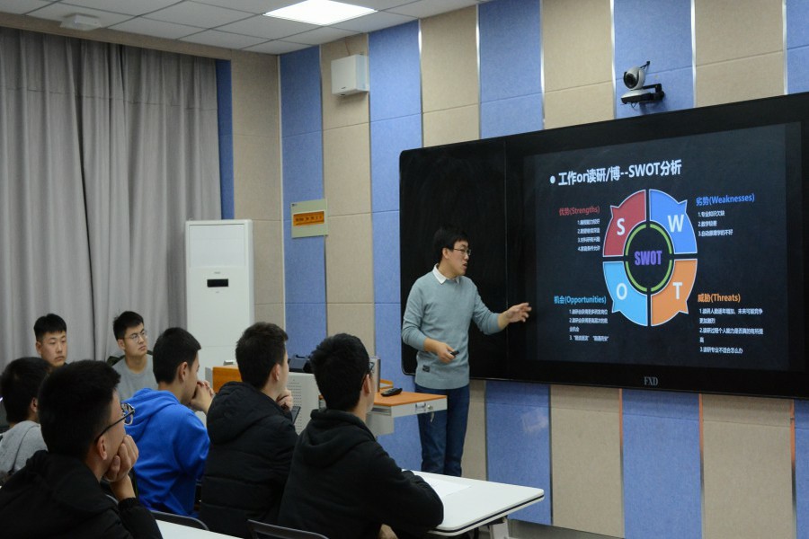 晚6时30分,讲座正式开始。主持人先简单向我们介绍了刘教授的个人经历和学术成果。随后,刘教授便开始了题为“寻找和发现自我”的专题讲座,主要向同学们介绍了自动化专业未来的科研方向和就业方向。刘教授建议同学们要充分了解自己的优势和劣势,再根据自己的个人特点和长处决定未来发展的方向,切勿在没有对自己进行系统性评估前盲目跟风,否则只会浪费个人优势和潜力,难以持之以恒地做好每一件事。在谈到学习效率时,他认为学习这件事情七分在于天赋,三分在于后天的努力,天赋决定了一个人的更倾向的优势之处,努力则决定了最终能达到的高度。刘教授还给同学们讲述了自己求学期间的小故事,引起共鸣,让同学们倍感亲切。在答疑解惑环节,同学们积极踊跃地提出多个方面的问题,刘教授一一耐心解答,并且留下了自己的联系方式,以便于今后和同学们进行更加深入地交流。至此,本次讲座圆满落下帷幕。