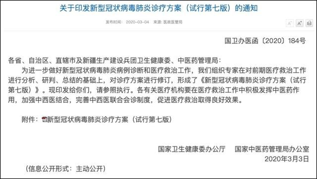 1. 第七版新冠肺炎诊疗方案发布