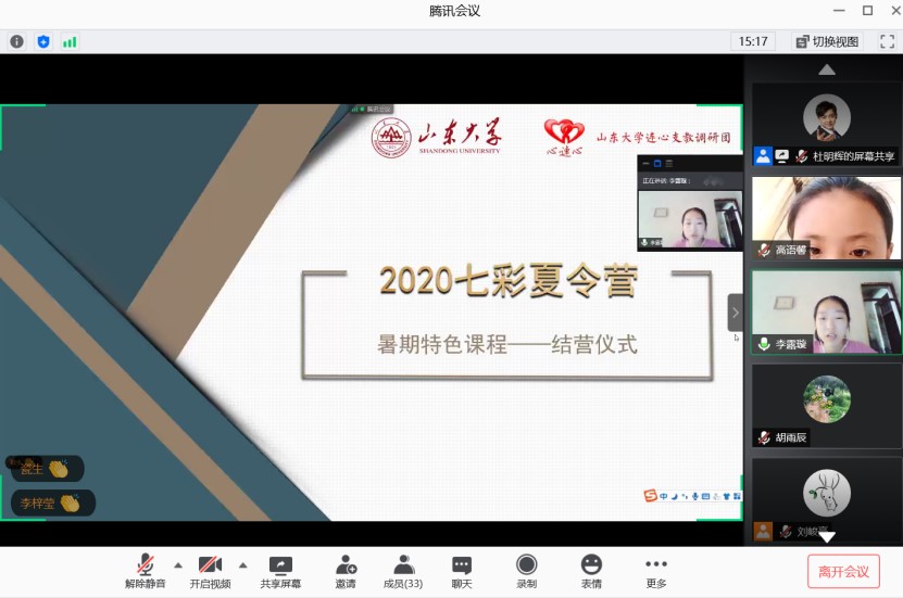 近日,澳门信誉最好十大平台连心支教调研团第二期“七彩夏令营”线上特色支教活动举办结营仪式,至此,本次线上支教活动圆满结束。