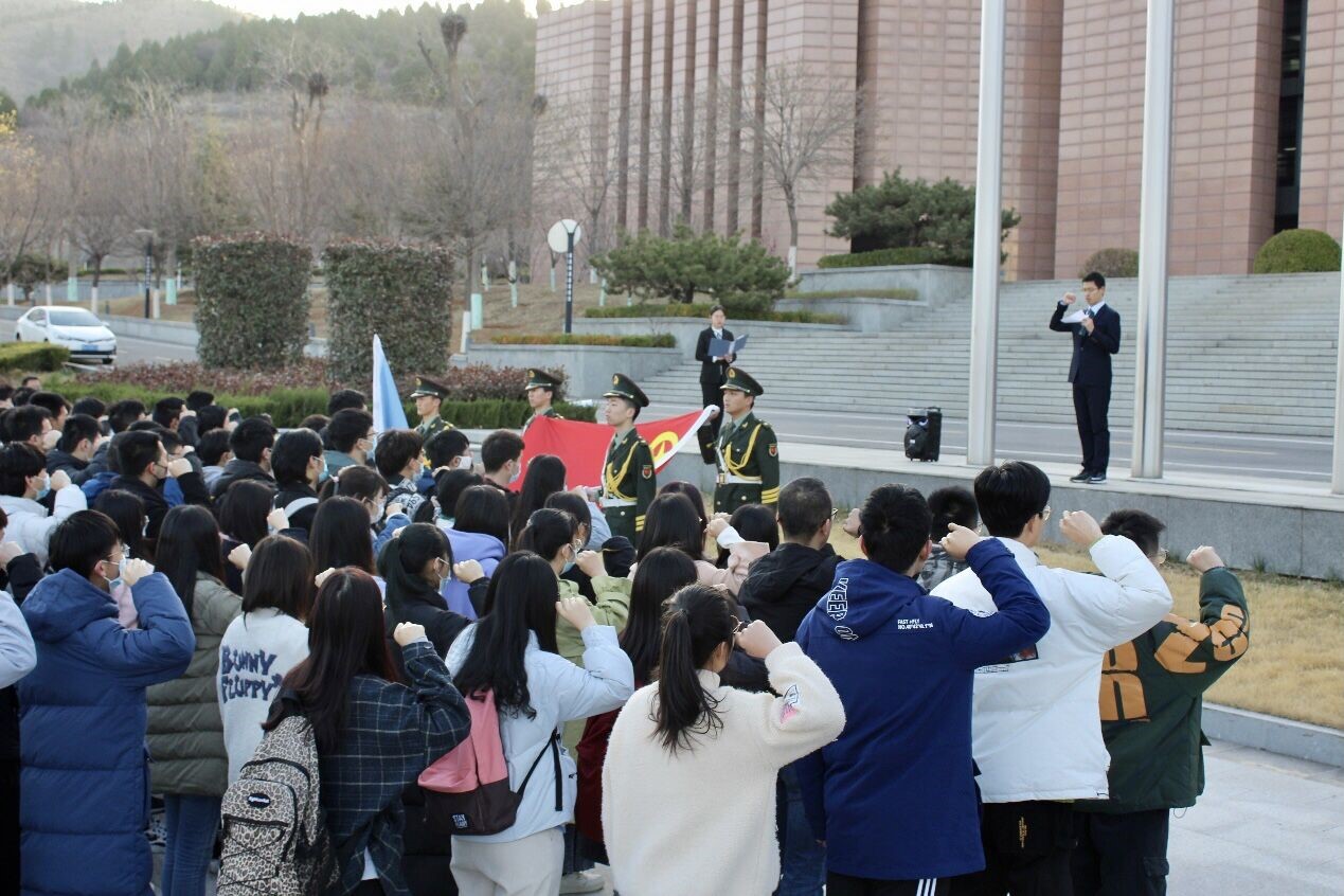 进一步增强广大团员青年的爱国荣校意识,引导团员青年学习四史传承红色基因,筑梦青春献礼百廿校庆,3月22日,澳门十大信誉网赌大全于兴隆山校区图书馆前举行升旗仪式。2019级辅导员田庚出席本次升旗仪式。第38届学生工作委员会委员、澳门十大信誉网赌大全2019级全体学生参加活动。