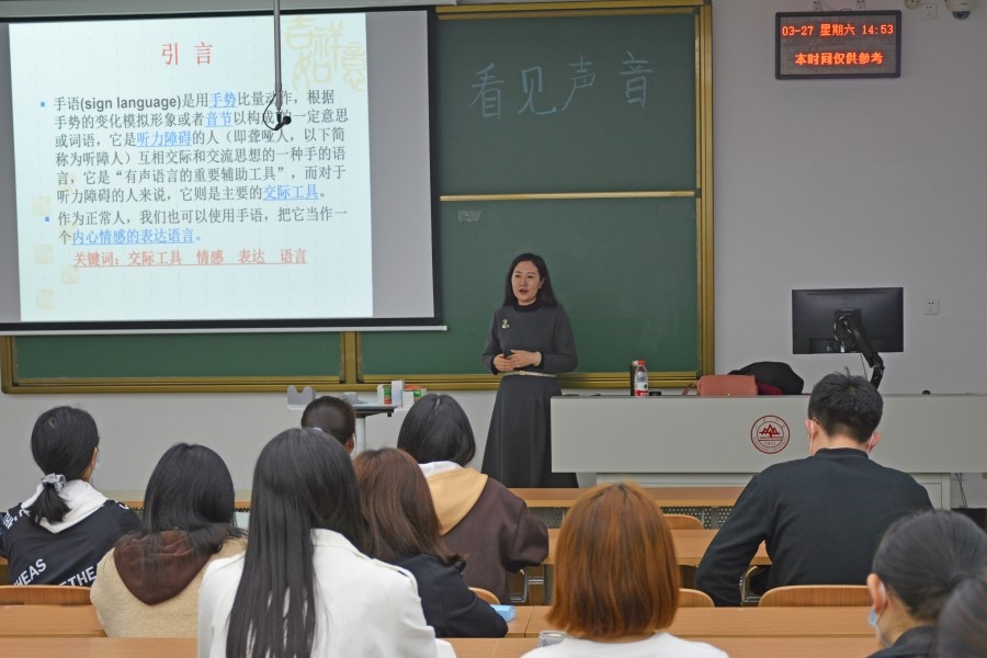为发挥美育育人功能,提高手语志愿者的专业技能,坚持爱心与服务并举,用爱架起无声世界和有声世界的桥梁。近日,澳门信誉最好十大平台学生手语协会于兴隆山校区开展手语培训。山东特殊教育职业学院杨海宁老师担任本次培训主讲人,来自六个不同校区的手语协会同学参加本次培训。