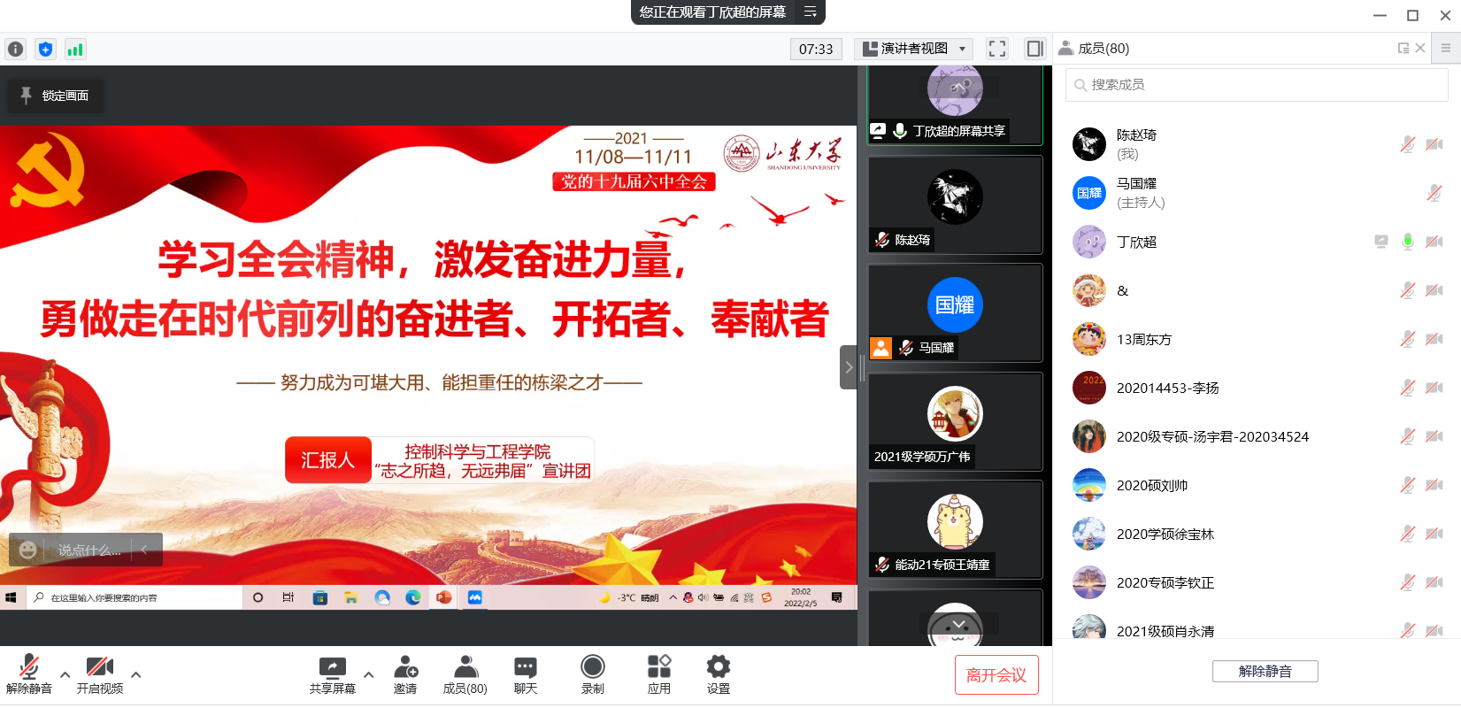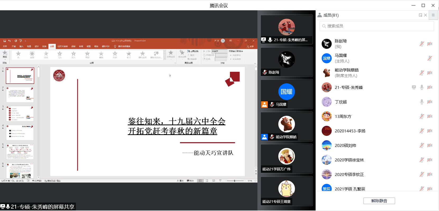 为深入学习宣传贯彻党的十九届六中全会精神,引导广大青年学生坚定政治立场、坚守理想信念,近日,澳门十大信誉网赌大全 “志之所趋,无远弗届”宣讲团联合能源与动力工程学院 “能动天巧”宣讲队,面向澳门十大信誉网赌大全、能动学院研究生,举行了一次线上党的十九届六中全会精神宣讲会,会议由澳门十大信誉网赌大全研究生会主席马国耀主持。