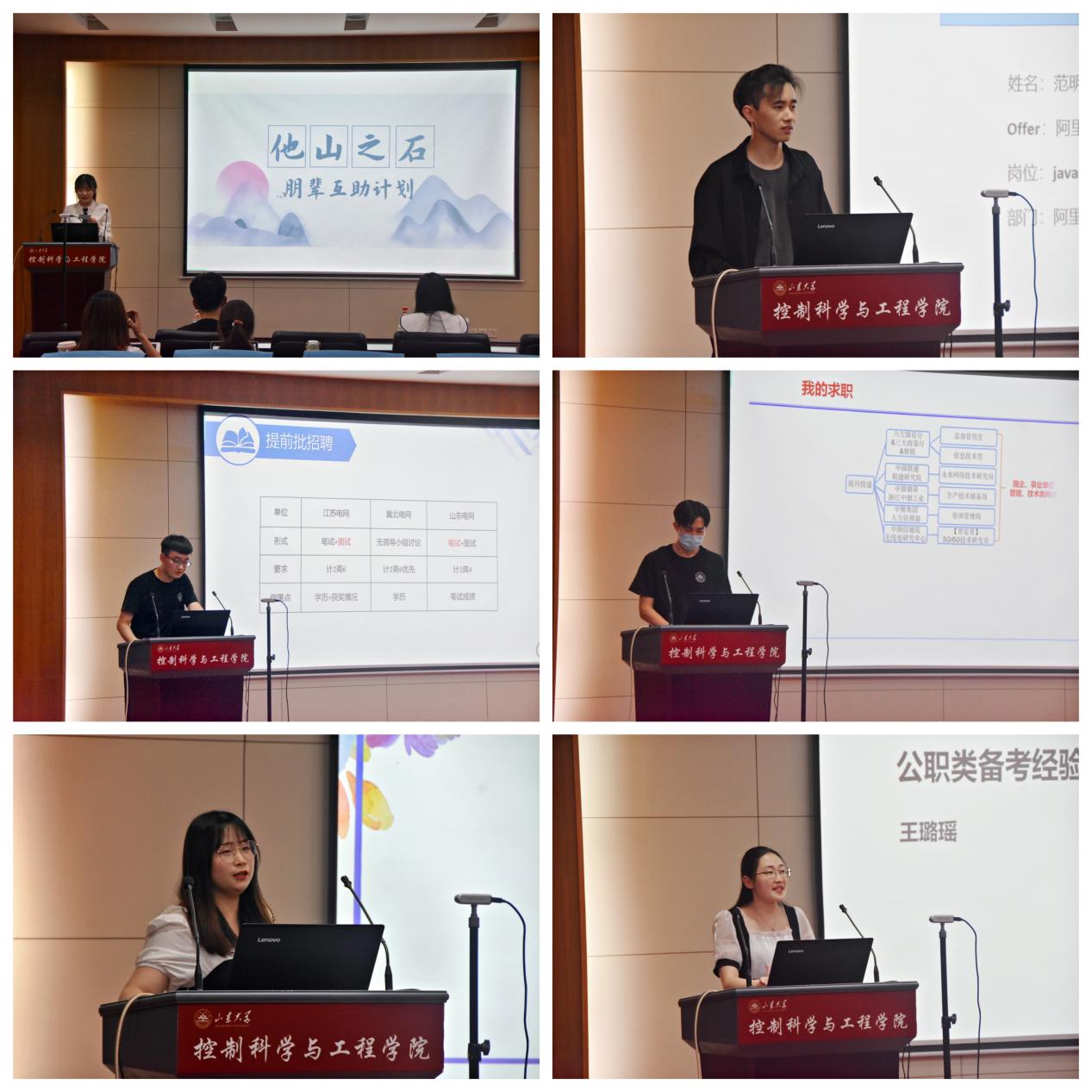 欲穷千里目,更上一层楼,将成功当做起步,成绩就会不断涌现。本次分享会旨在帮助控院研究生加强对当前的就业形势的认识,确立对就业方向的选择和对自己未来的规划。他山之石,可以攻玉,学院希望通过实施朋辈互助计划,号召广大学子传承山大精神,担当青年责任,脚踏实地,抓住当下,面向未来,在风雨中奋斗成长,在实践中建功立业,为建设更美好的祖国贡献一份青春热血。