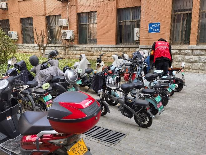 由于千佛山校区电动车数量增长速度较快,受限于场地或出于自身便利,经常会出现电动车乱停乱放的现象,停放到行车道上或人行道上的电动车,影响车辆通行,造成交通堵塞。澳门十大信誉网赌大全生活服务志愿者团队发起了“规范电动车,控院在行动”活动,大家一起将影响师生出行的电动车挪至停车区,规范停车区车辆摆放,身体力行地鼓励广大同学养成自发规范停放电动车的习惯。