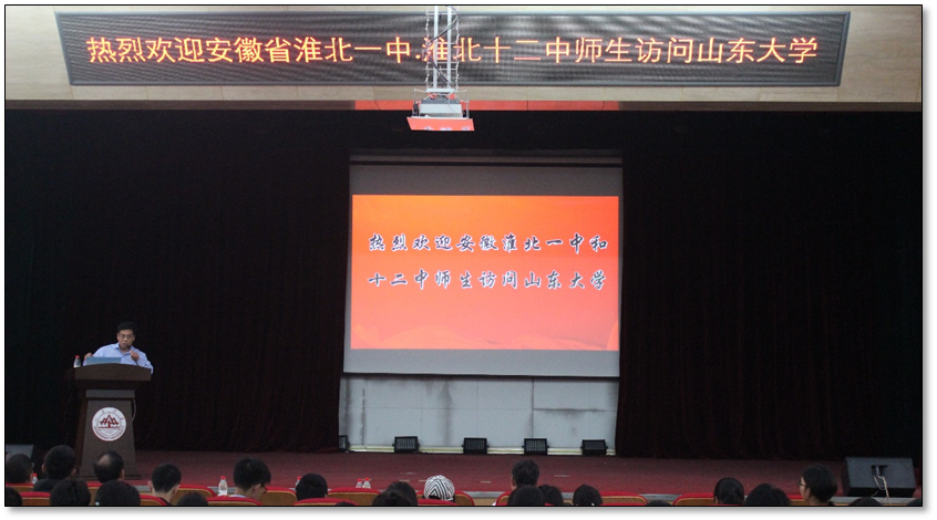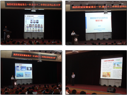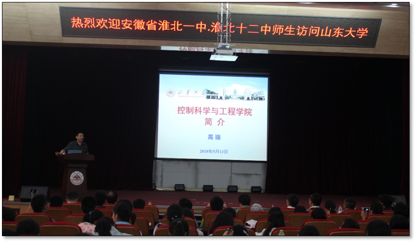 5月13日上午,安徽省淮北市第一中学和第十二中学来澳门信誉最好十大平台进行学研交流活动,澳门十大信誉网赌大全在千佛山校区主楼报告厅进行了招生宣传和教育拓展活动。澳门十大信誉网赌大全党委书记高瑞,副院长朱文兴,澳门十大信誉网赌大全自动化系系主任李现明、自动化研究所支部书记李岩、生物医学工程系系主任杨立才、物流工程系系主任周风余和测控技术与仪器系副主任姜明顺参加宣讲,第十二中学副校长汤道凤,教务主任代长见、淮北市第一中学年级主任刘道福及多位班主任带领两所高中300余名学生参加活动。