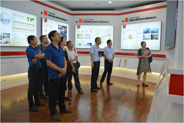 随后,考察团随接待人员进入东明石化集团总部,参观了石化集团30年成果展厅,了解了石化集团自1987年成立以来三十年的发展历程与成绩。副总裁张云杉介绍,集团现有员工7300余人,总资产300亿元,原油一次加工能力每年1500万吨,自2007年起连续入围“中国企业500强”,排名连年跃升,先后建成多个大型石化项目,生产规模不断扩大,经济效益不断增长,企业整体呈现向上向强良好发展。东明石化将在“实业+投资”双轮驱动发展战略指引下,立足全球,把东明石化建设成为具有较大国际影响力的特大型、综合性能源化工集团。