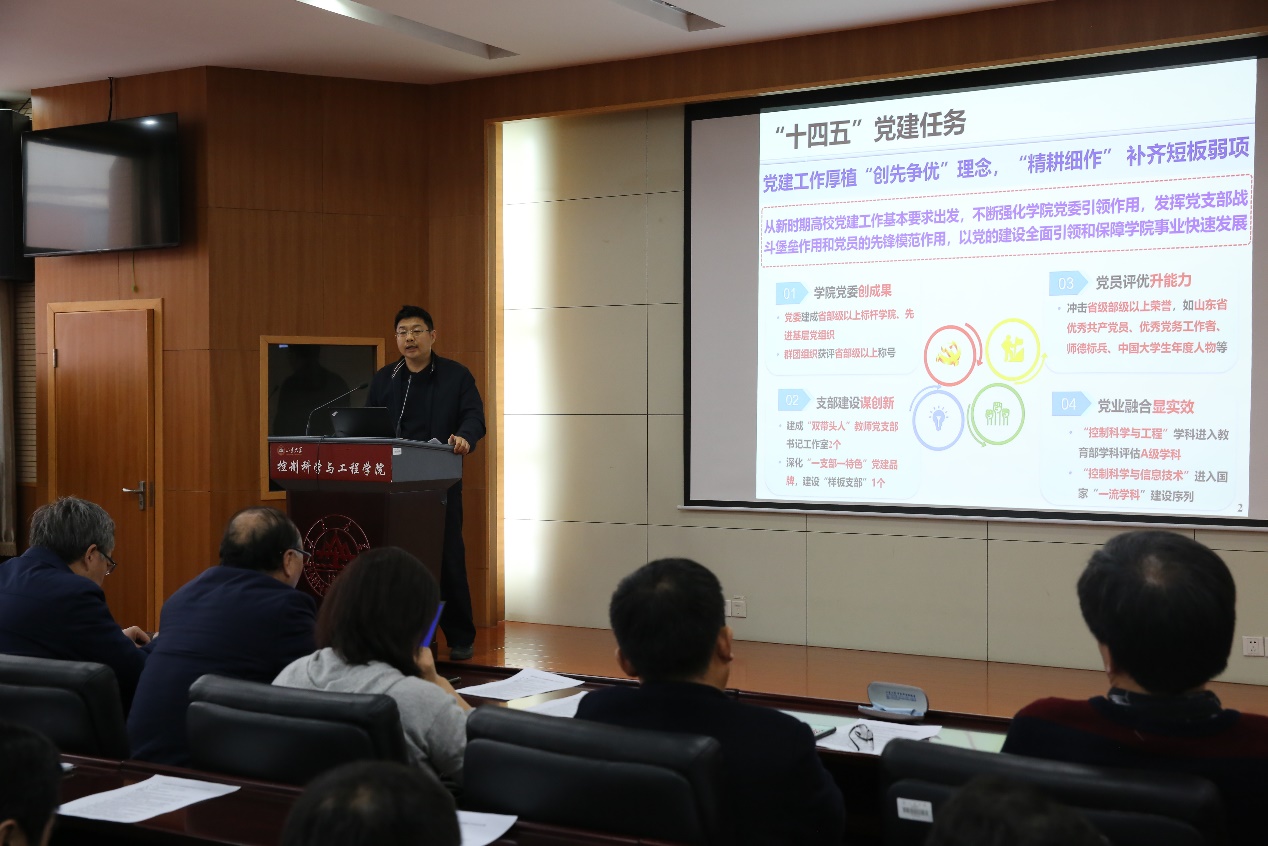 学院其他管理服务团队成员分别就“十四五”期间学院本科专业建设,教育教学、学生管理、教师党建等相关工作规划进行了汇报,并部署了新学期工作任务重点。常发亮通报了前期学院双一流培育学科建设和新一届领导班子任期目标责任书制定情况,并对科研组织、项目申报等工作进行了部署安排。海外优青邢兰涛教授等11名新入职优秀青年教工分别进行了自我介绍。