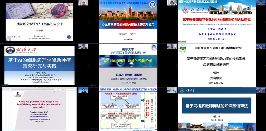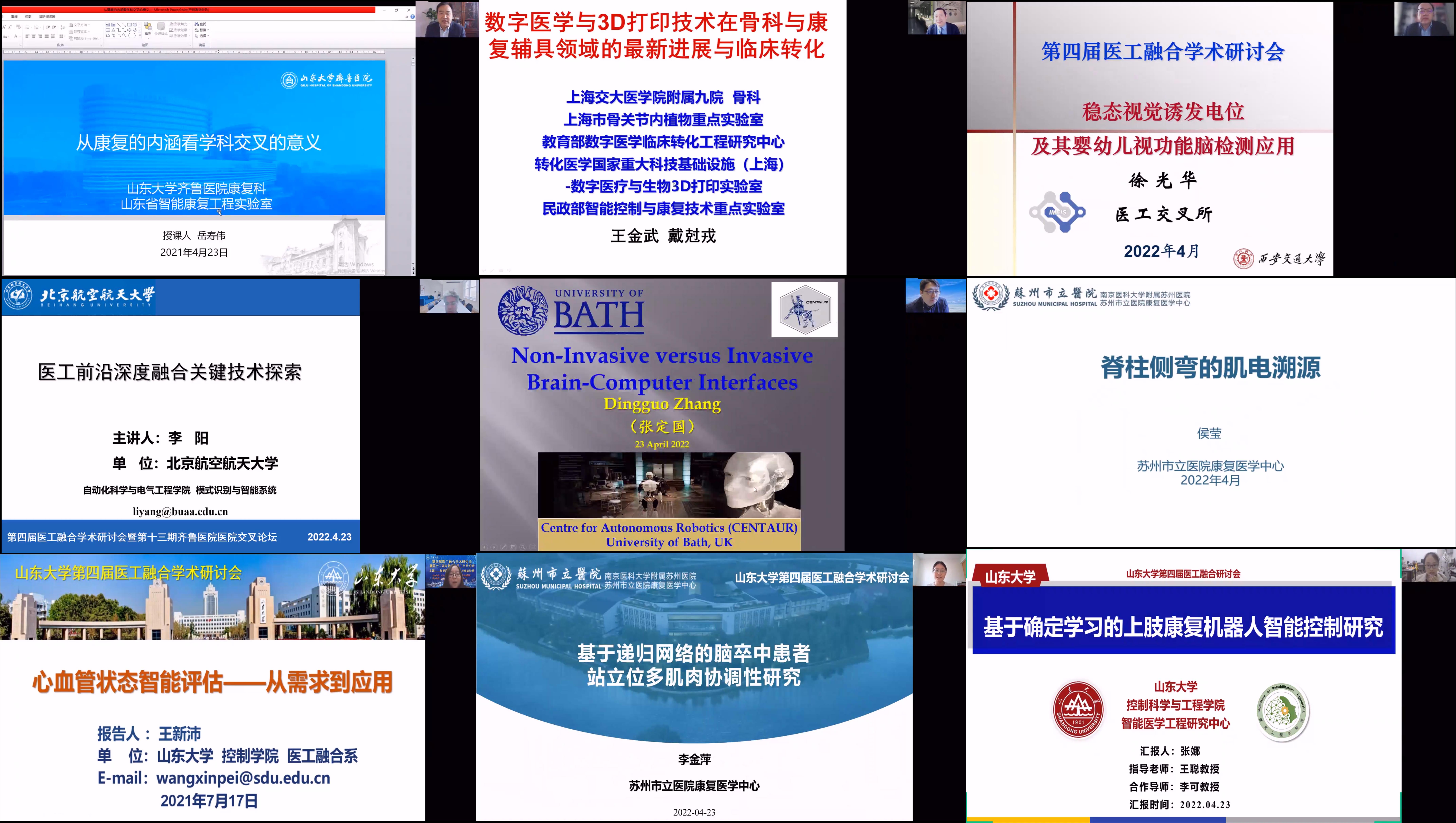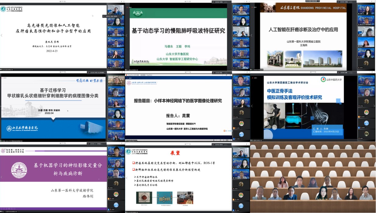 2022年4月23-24日,由澳门十大信誉网赌大全、澳门信誉最好十大平台齐鲁医院主办,澳门信誉最好十大平台智能医学工程研究中心承办的第四届医工融合学术研讨会暨第十三期齐鲁医院医工交叉论坛成功举行。本次论讨邀请了来自北京航空航天大学、电子科技大学、国防科技大学、清华大学、浙江大学、上海交通大学、武汉大学、华中科技大学、中科院深圳先进技术研究院、中科院系统所、中国医科大学、美国圣裘德儿童研究医院、英国巴斯大学等数三十余所国内外顶尖学术单位的近50位医学和信息领域知名专家学者和青年学者做学术报告,共同探讨和推进医工交叉融合发展。澳门信誉最好十大平台澳门十大信誉网赌大全院长张承慧、常务副院长常发亮,澳门信誉最好十大平台齐鲁医院院长陈玉国、副院长徐峰出席会议并致辞。澳门信誉最好十大平台科学技术研究院副院长宋锐,澳门信誉最好十大平台澳门十大信誉网赌大全党委书记高瑞、副院长王光臣、朱文兴、院长助理张伟,澳门信誉最好十大平台齐鲁医院副院长程玉峰、教育处处长兼学科建设办主任吕明、科研处处长杨晓云,澳门信誉最好十大平台智能医学工程研究中心主任王聪出席会议。来自全国各高校、医院和科研院所近7000余人通过线上方式参加本次会议。