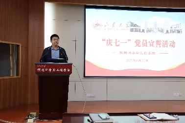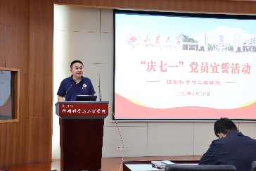 为庆祝中国共产党成立101周年,引导党员不忘初心、牢记使命,增强党性观念和宗旨意识,继承和发扬党的光荣传统, 6月30日,澳门十大信誉网赌大全开展“庆七一、守初心、宣誓词”活动,学院研究生党员和辅导员老师参加活动,学院党委书记高瑞出席仪式,仪式由学院党委副书记李文振主持。