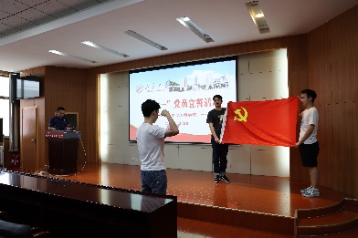 活动在雄壮的国歌声中拉开序幕,参加仪式的全体党员面对党旗,在领誓人孙之栋带领下,举起右手庄重宣誓,时刻提醒着自己所肩负的神圣使命和责任,为共产主义事业奋斗终生。宣誓完毕后,新党员代表孙晓辉,老党员代表范崇峰分别发言。孙晓辉表示,对党忠诚,是共产党人首要的政治品质,要用坚定的信念作支撑,用崇高的理想作牵引,作为学生党员,要不断增长见识,开拓视野,认真科研,政治上靠得住、学习上有佳绩。范崇峰表示,时刻牢记全心全意为人民服务的宗旨,具备坚定的信念和崇高的觉悟,发挥党员的先锋模范带头作用,把个人的人生追求同民族的前途命运紧紧联系在一起。