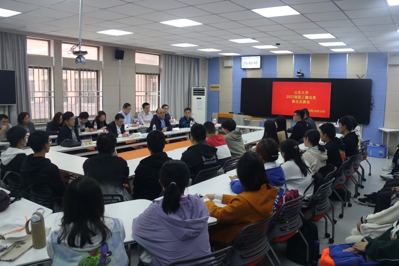 随后,生物医学工程研究所所长刘治平,2022级新生班主任、齐鲁医院骨科副主任医师司萌,2022级新生班主任、齐鲁医院耳鼻喉科副主任医师冯昕分别讲话,强调医工融合对于医学发展的重要性,并鼓励同学们潜心学习专业知识、提升自身科研能力,主动思考,积极进取,勇创医工融合新未来。随后,学生们与在场教师进行了热烈的讨论。