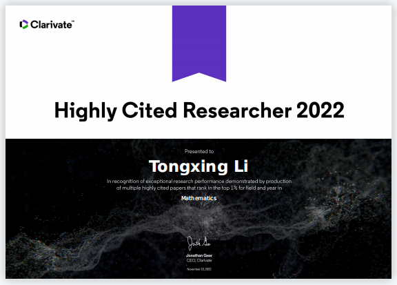 11月15日,国际权威学术评价机构科睿唯安发布2022年度全球“高被引科学家”名单,澳门十大信誉网赌大全李同兴教授入选。