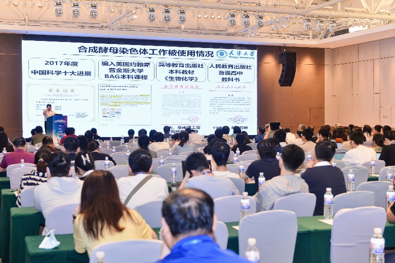 在大会报告环节,各位与会专家分别带来了精彩演讲。中国科学院院士、天津大学元英进教授就“合成基因组及应用”作主旨报告,系统介绍了生物化工前沿和应用领域,其中包括将基因组合成技术应用于生物制造、新药研发、环境修复等方面取得的一系列重要成果,他们提出的双标靶向精准修复策略能够实现整条染色体修复全覆盖,从而完成缺陷序列的精准修复,建立的合成酵母基因组缺陷快速定位(PoPM)和精确修复方法处于国际研究的前沿水平。中国科学院遗传与发育生物学研究所王秀杰研究员就“人类心肌组织和多组织类器官的体外构建”作主旨报告,介绍了她同团队成员开发的一种使用人类胚胎干细胞生成人类多器官发生模型(huMO)的方法。国防科技大学智能科学学院胡德文教授就“脑信息的模式识别”作主旨报告,介绍了脑信息处理的基本原理和模式识别的方法,以及脑机接口技术在医学、军事等领域的应用,展望了脑信息处理的未来发展趋势。