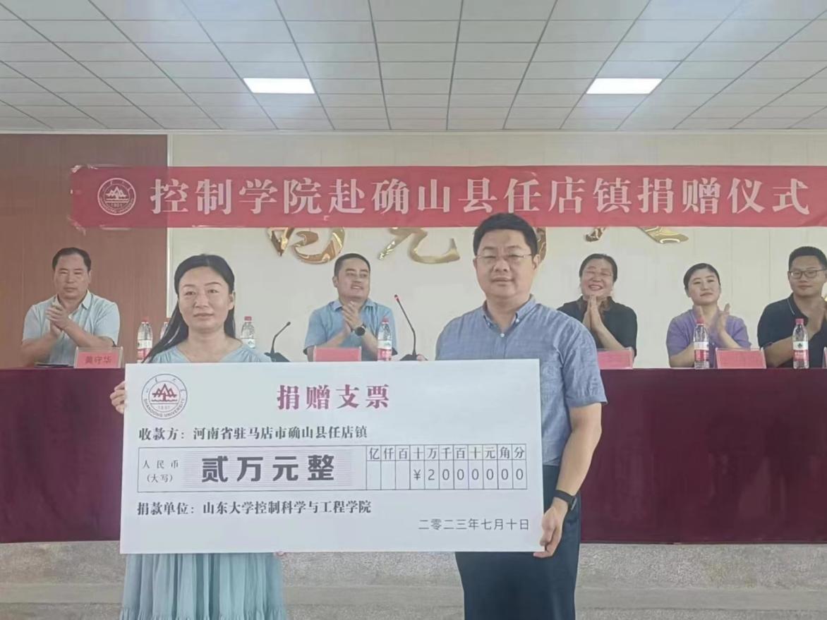 7月10日,澳门十大信誉网赌大全在确山县任店镇中心举行捐赠仪式,以及连心支教团第八届“七彩课堂”暨第三期“七彩夏令营”暑期支教活动开营仪式。活动伊始,高瑞代表学院向确山县任店镇捐赠乡村振兴定点帮扶款。随后的开营仪式中,陈广平、镇中心学校校长黄守华、高瑞先后发言。陈广平表达了对山大连心支教调研团的欢迎,称赞澳门信誉最好十大平台澳门十大信誉网赌大全近年来不断赴河南省确山县深入开展定点扶贫结对帮扶工作。黄守华介绍了当地贯彻落实党的教育方针情况,回顾了三年来与山大连心支教团的合作历程,对山大连心支教团的再次到来表示热烈欢迎和衷心感谢。高瑞在发言中表示,乡村振兴要优先发展教育,连心支教团深耕乡村教育多年,坚守“我走进大山,是为了让你走出大山”的初心理念,支教足迹遍布全国多省市地区,惠及近万名乡村学子,队伍成熟,经验丰富,相信能够助力当地教育先行和革新,他对支教团全体同学提出要求:“要精心上好为期两周的支教课程,热心帮助当地学生,将自己的所学所知与他人无私分享,为乡村的孩子打开通向知识和未来的大门,同时拓宽自己视野,增长阅历,有所成长和收获,让青春在支教的火热实践中绽放和结果”。支教团成员代表韩铠泽发言并宣读了夏令营安全规章,表达了支教团全体成员对支教工作的决心和态度。最后,高瑞向学校捐赠物资,展现出澳门信誉最好十大平台“济天下,助人才”的担当与责任。