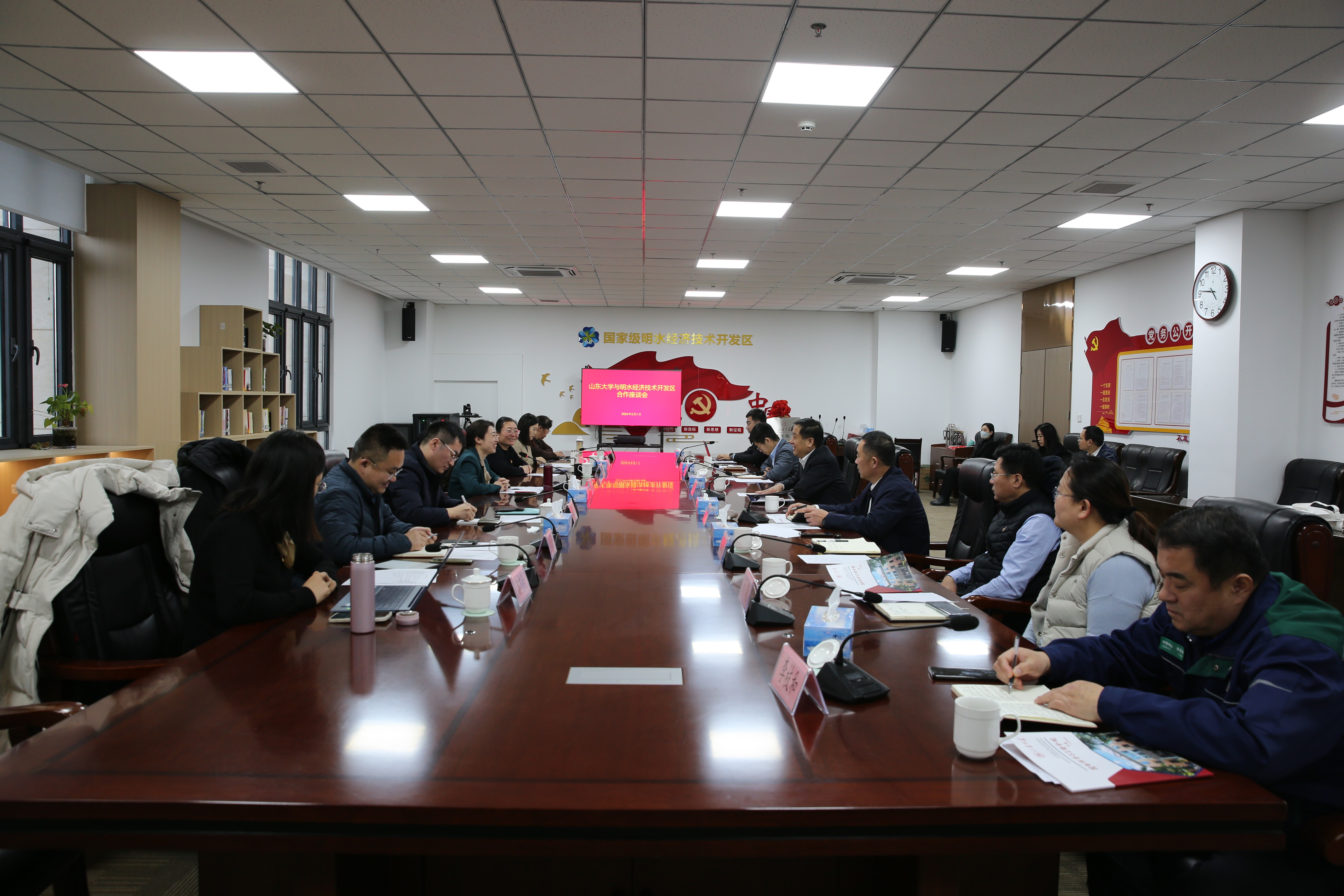 2月1日,澳门信誉最好十大平台与明水经济技术开发区举行合作发展座谈会。澳门信誉最好十大平台团委书记马毓轩、澳门十大信誉网赌大全党委书记吴晓晴、科学技术研究院副院长王焕杨、明水经济开发区党工委副书记、管委会主任黄波、副主任李屹东出席活动。