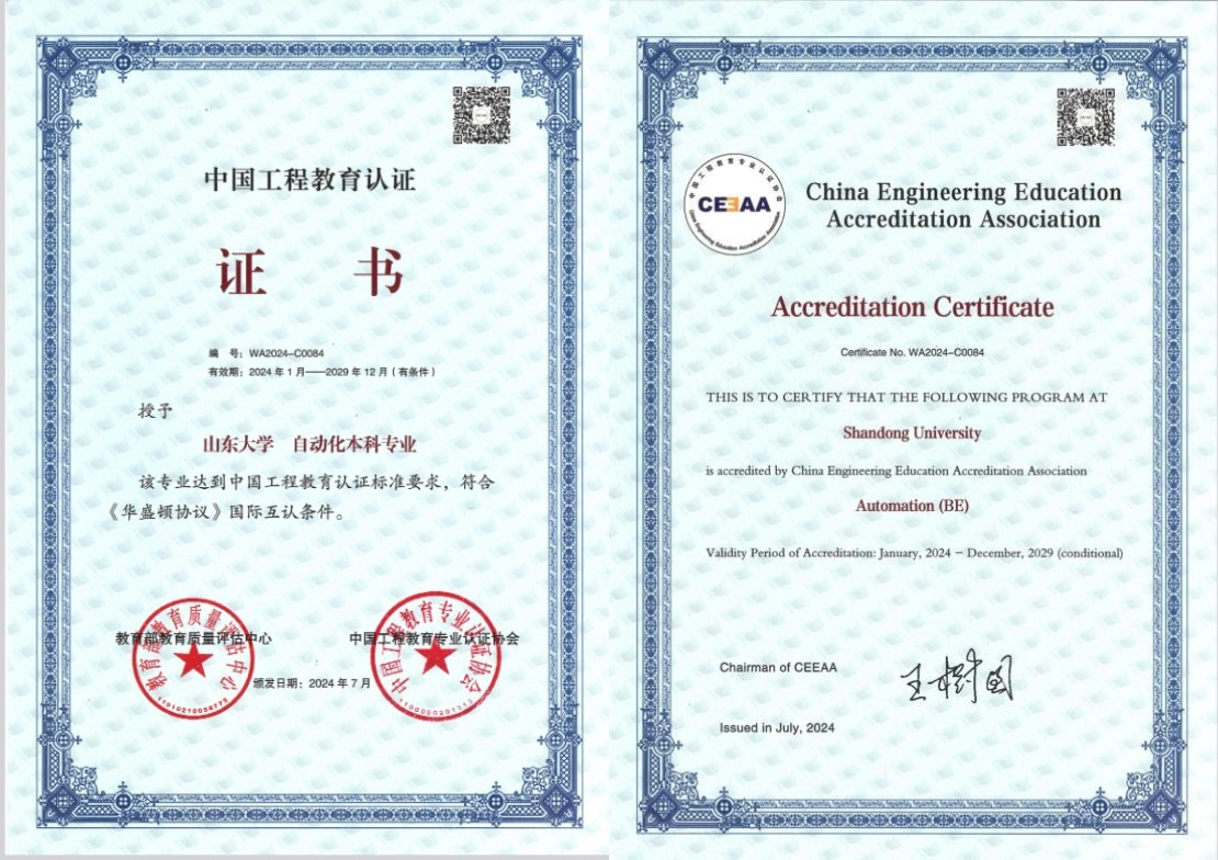 2024年7月,中国工程教育专业认证协会正式发布2023年工程教育专业认证结论,我校自动化专业经过申请审核、自评审核、专家组线上考查、结论审议等程序,顺利通过认证,认证有效期为6年(自2024年1月至2029年12月)。