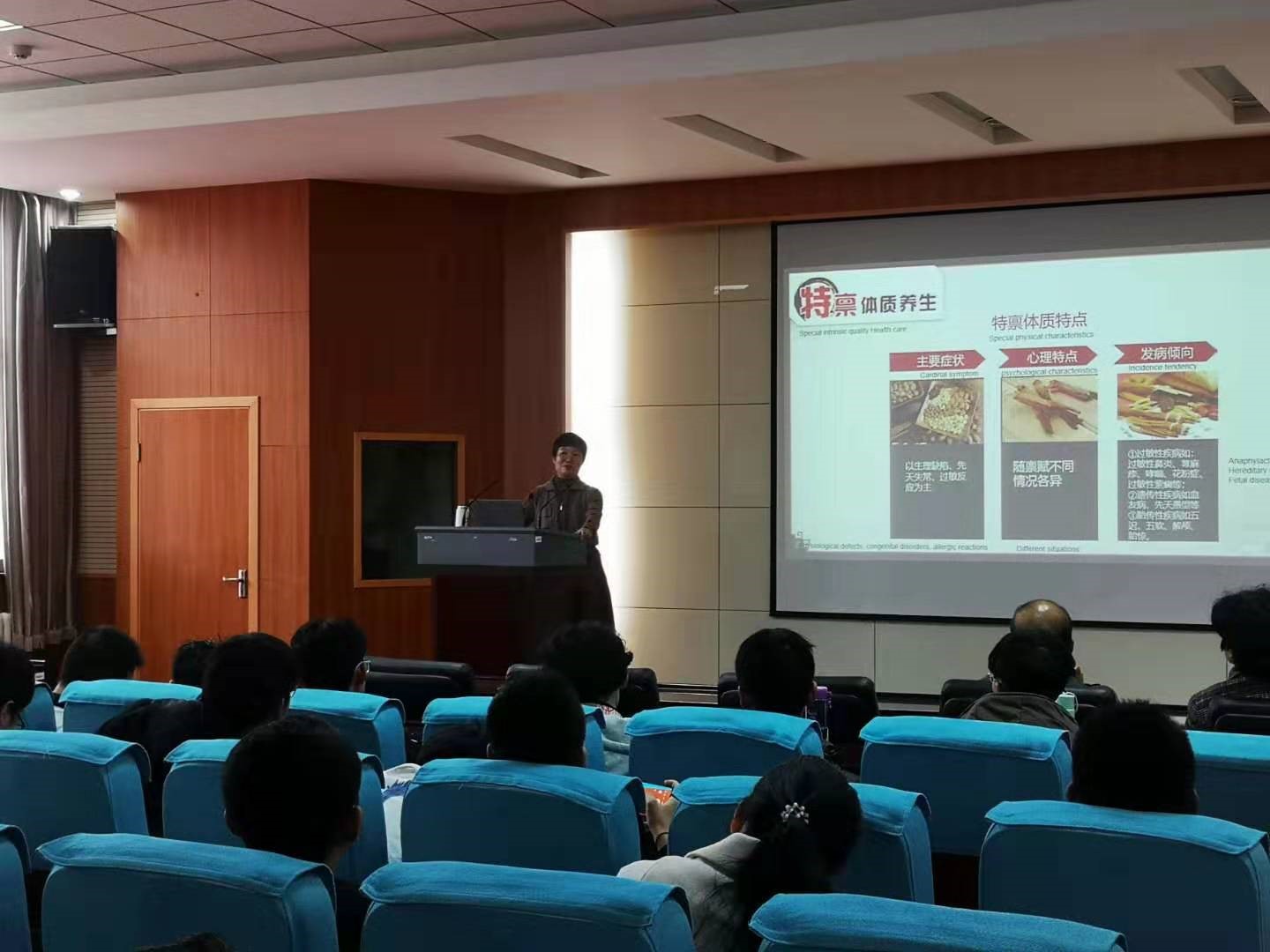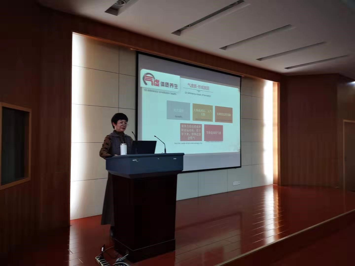 牛教授首先对中医历史和中医理论进行了详细的介绍,让师生们对中医的治疗方式和治疗理念有了清楚的认识,之后,牛教授重点介绍了中医九种体质,并就每种体质的养生方式进行了详细的介绍。