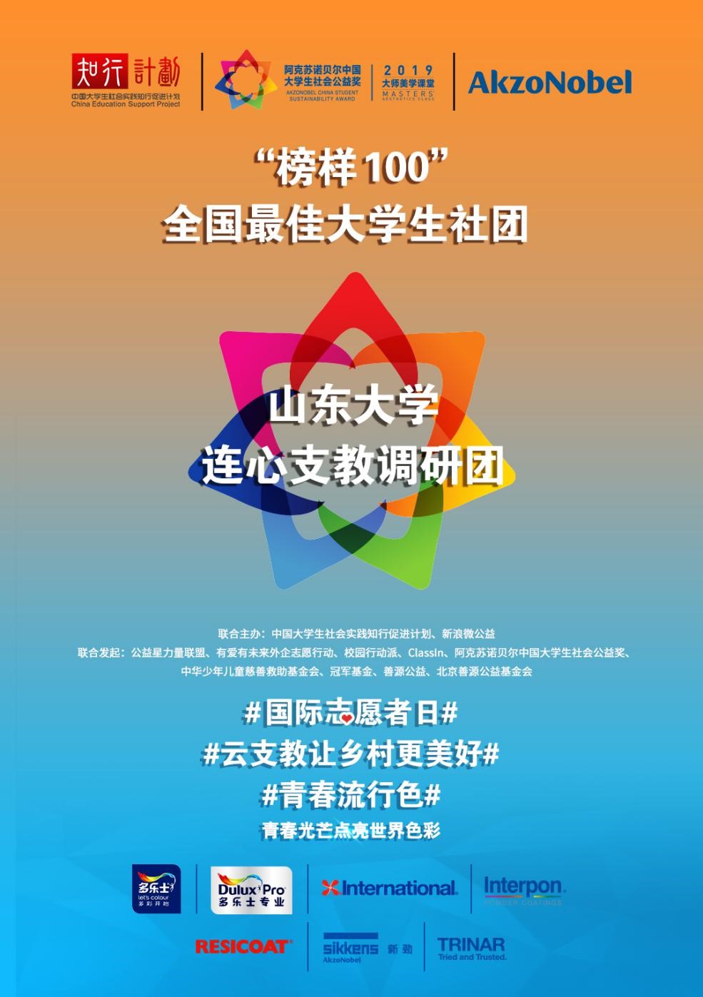 2019年12月5日,“中国大学生社会实践知行促进计划”(简称“知行计划”)公布2019年“榜样100”全国最佳大学生社团获奖名单,澳门信誉最好十大平台连心支教调研团获评全国最佳大学生社团。